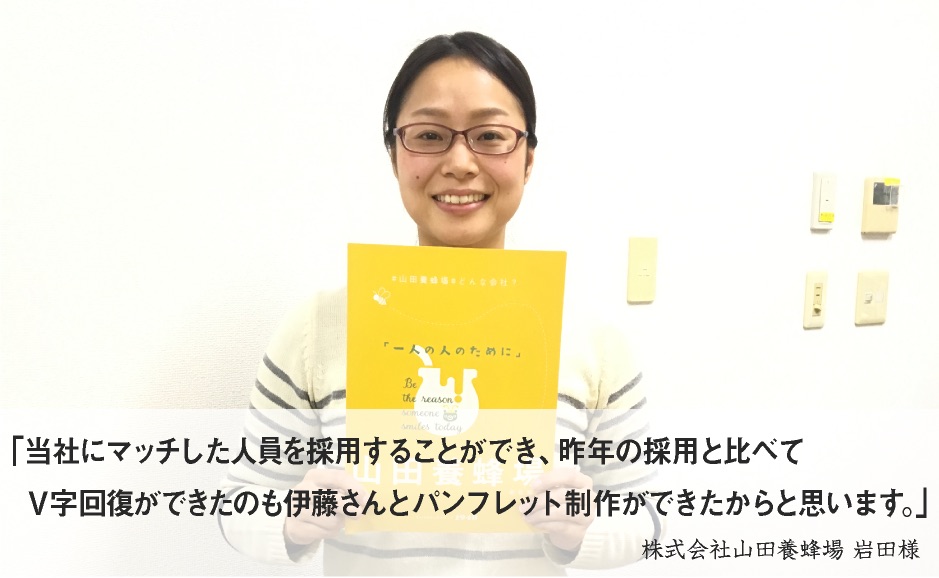 「高校生」をターゲットにする場合は未成年であるため、親御さまや先生に向けたコンテンツも必要であり、高校生向けは大学生向けの採用パンフレットと作り方が違うことをご説明させていただきました。当社では高校生向けの採用パンフレット制作の実績が数多くあり、その経験から山田養蜂場様の魅力を最大限に引き出し、それを伝える最適な方法をご提案させていただきました。また、採用パンフレット制作の経験が数多くあるからこそ、他の制作会社さまでは難しいスケジュールでも当社であれば十分作成できることをお伝えしました。